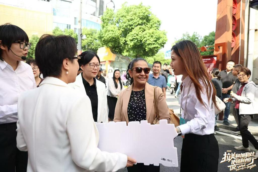 本次服务最鲜明的亮点,在于打破“单纯语言翻译”的传统模式,将荆州楚文化内涵深度融入语言服务全过程。在点位讲解中,师生团队不仅精准传递历史信息,更以生动表述解读楚式青铜器的纹饰寓意、楚辞的文化渊源;交传现场,他们灵活转化“荆风楚韵”相关表达,让“楚国八百年”的历史厚度与当代荆州的活力风采通过语言具象化,使语言服务真正成为文化传播的“活桥梁”。